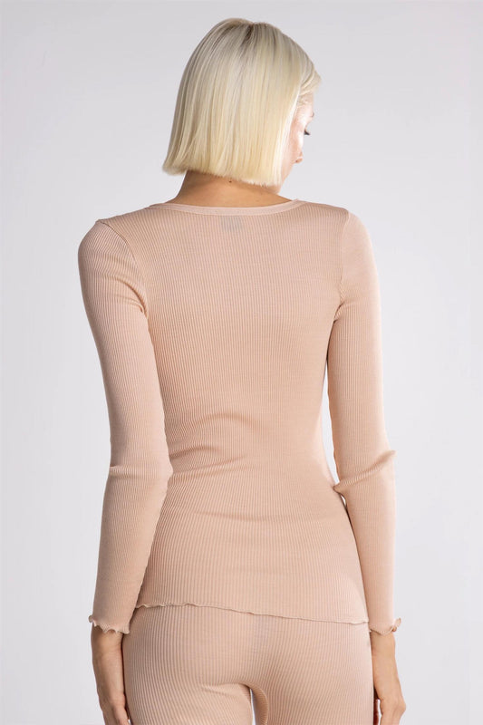 Ull silke top ribbestrikk Sand